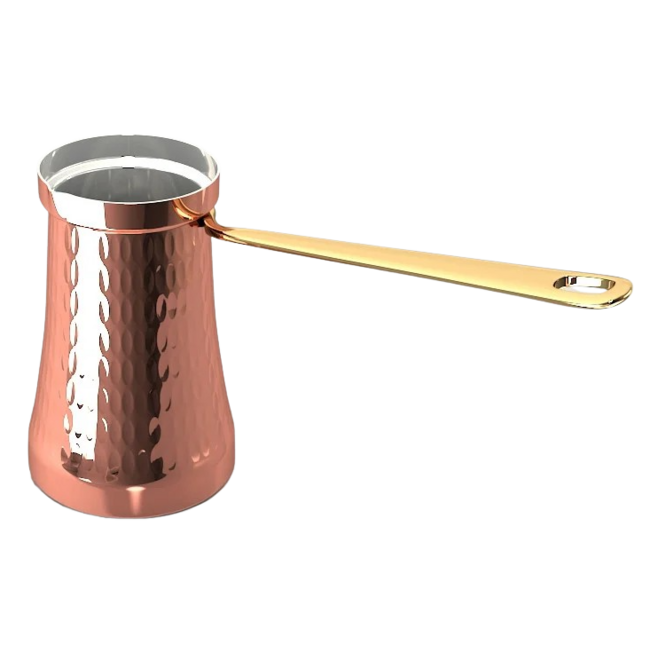 Джезва подходит для использования на газовых, электрических и стеклокерамических плитах. На индукционной плите медную турку использовать нельзя. Готовить кофе в медной джезве на индукционной плите можно только с использованием адаптера.