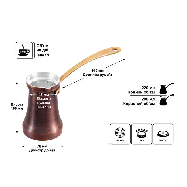 Медная турка ZH 200 мл Патина