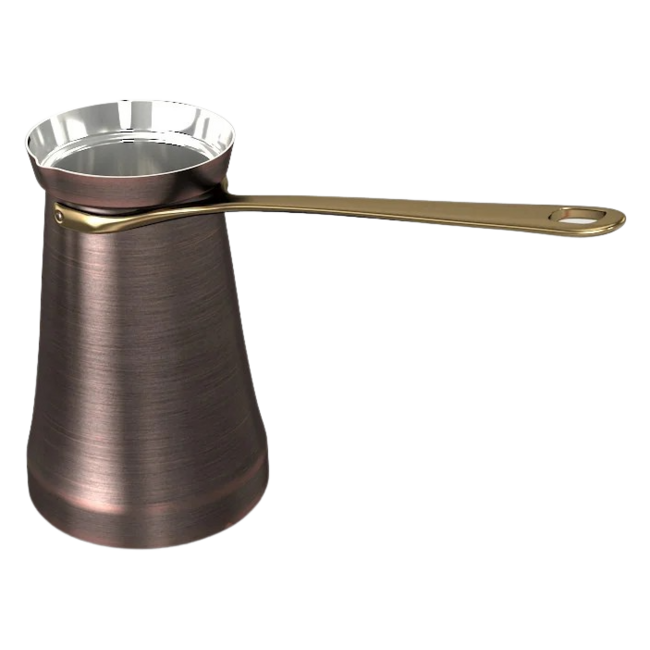 Джезва подходит для использования на газовых, электрических и стеклокерамических плитах. На индукционной плите медную турку использовать нельзя. Готовить кофе в медной джезве на индукционной плите можно только с использованием адаптера.